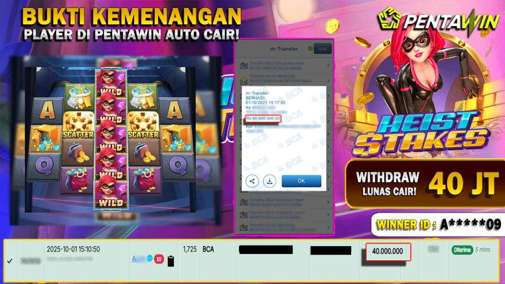 Bukti Kemenangan Dan Withdraw 01 OKTOBER 2025 Di Game Heist Stakes WD 40 JUTA