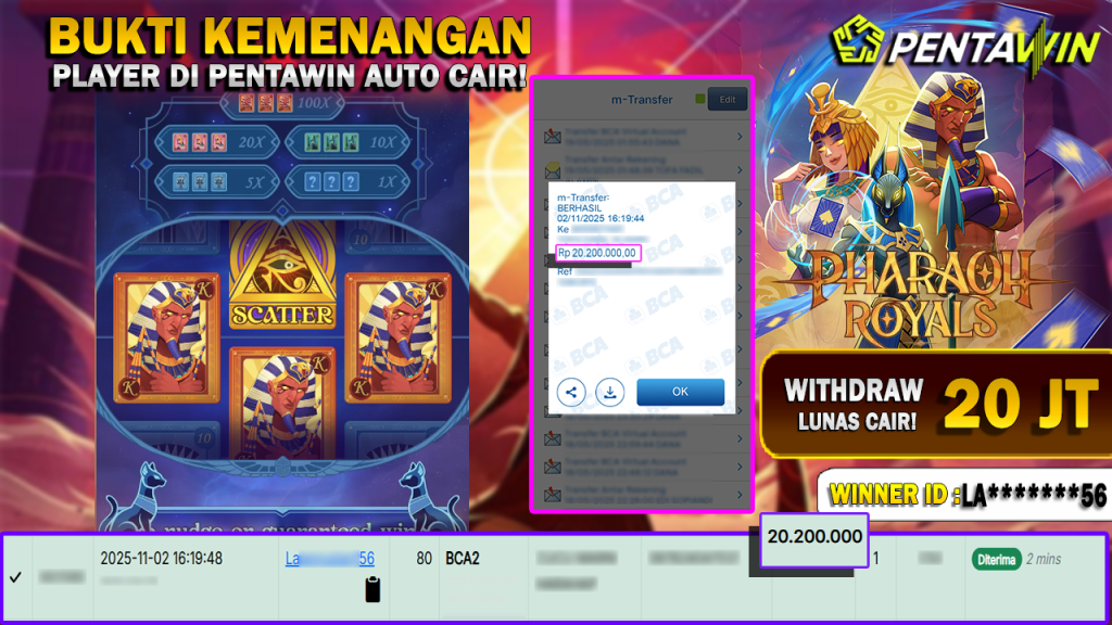 Bukti Kemenangan Dan Withdraw 02 NOVEMBER 2025 Di Game pharaoh royals WD 20 JUTA