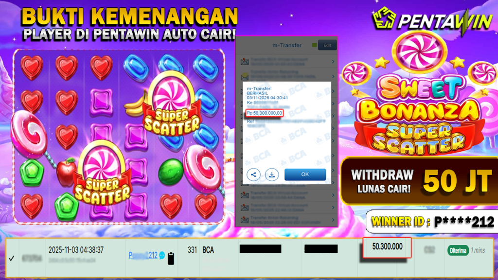 Bukti Kemenangan Dan Withdraw 03 NOVEMBER 2025 Di Game Sweet Bonanza Super Scatter WD 50 JUTA