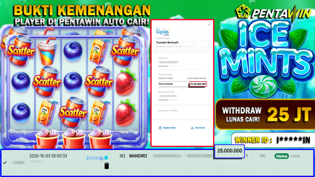 Bukti Kemenangan Dan Withdraw 03 OKTOBER 2025 Di Game ice mints WD 25 JUTA