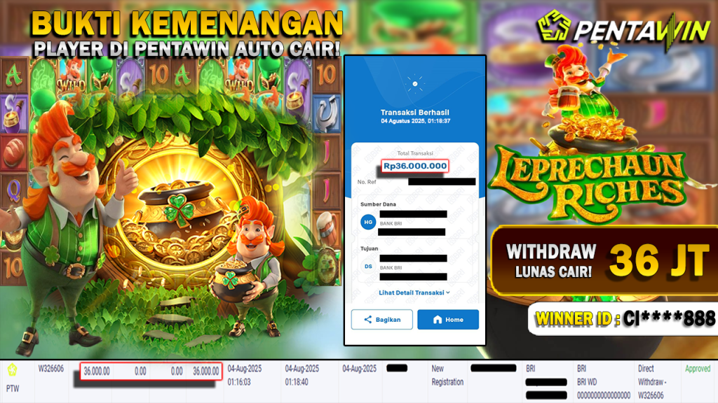 Bukti Kemenangan Dan Withdraw 04 2025 Di GAME Leprechaun Riches Wd 36 Juta