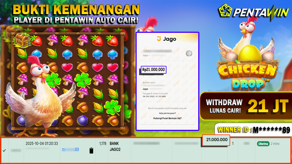 Bukti Kemenangan Dan Withdraw 04 OKTOBER 2025 Di Game chicken drop WD 21 JUTA