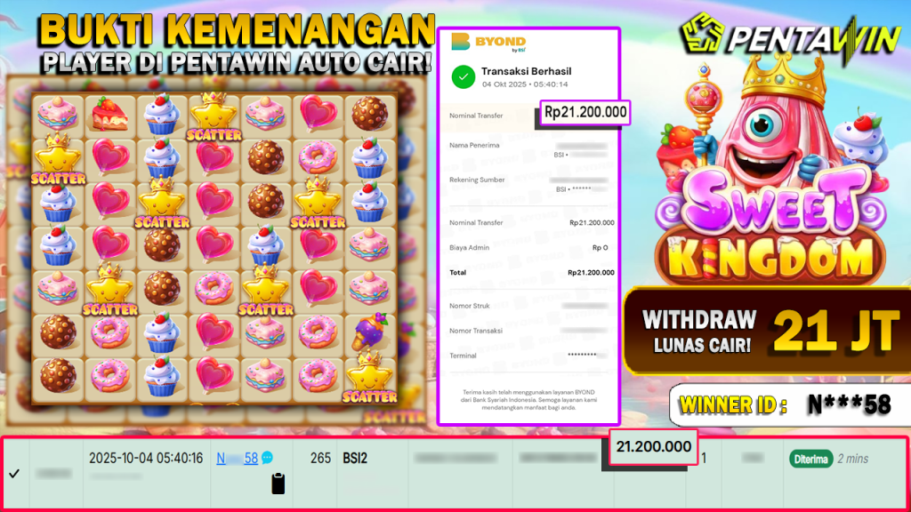 Bukti Kemenangan Dan Withdraw 04 OKTOBER 2025 Di Game sweet kingdom WD 21 JUTA