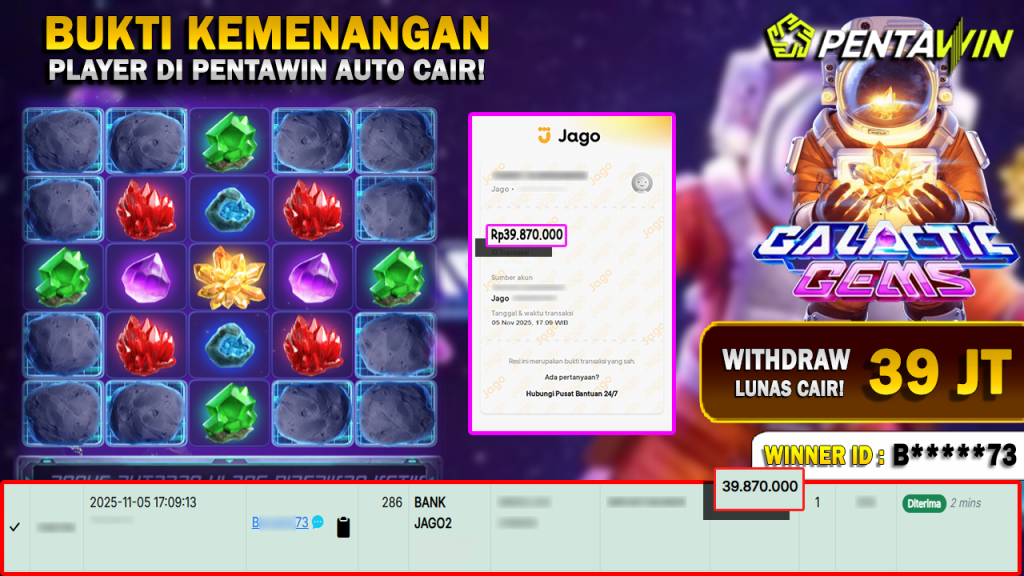 Bukti Kemenangan Dan Withdraw 05 NOVEMBER 2025 Di Game Galactic Gems WD 39 JUTA