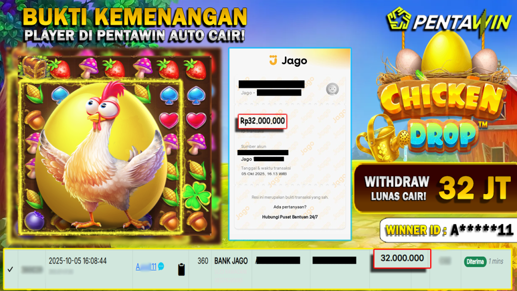 Bukti Kemenangan Dan Withdraw 05 OKTOBER 2025 Di Game chicken drop WD 32 JUTA