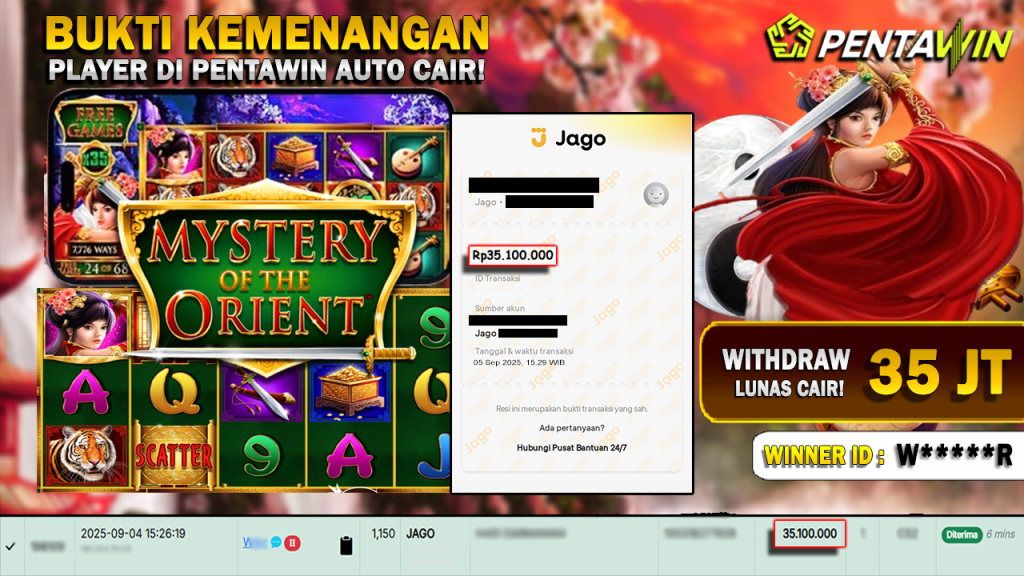 Bukti Kemenangan Dan Withdraw 05 SEPTEMBER 2025 Di Game mystery of the orient Wd 35 Juta
