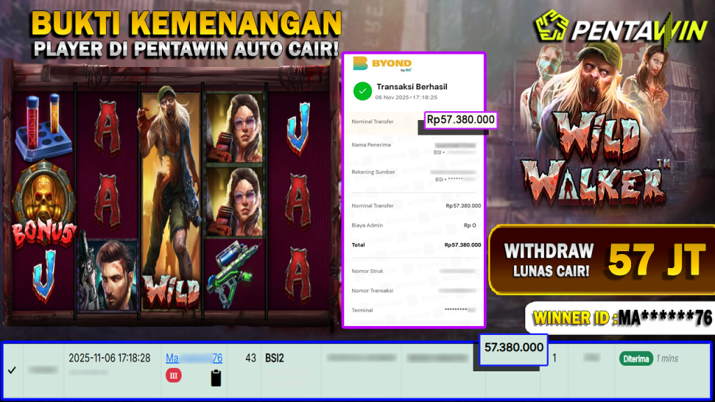 Bukti Kemenangan Dan Withdraw 06 NOVEMBER 2025 Di Game Wild Walker WD 57 JUTA