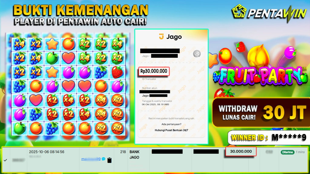 Bukti Kemenangan Dan Withdraw 06 OKTOBER 2025 Di Game fruit party WD 30 JUTA