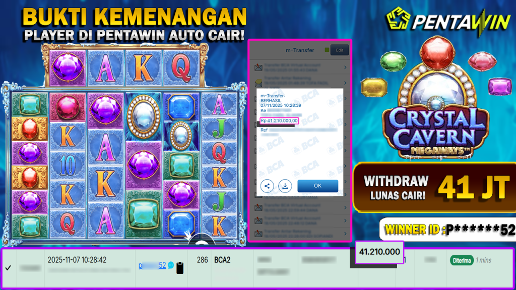 Bukti Kemenangan Dan Withdraw 07 NOVEMBER 2025 Di Game Crystal Caverns Megaways WD 41 JUTA