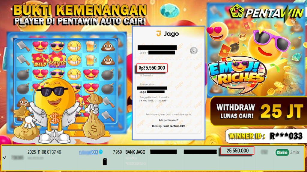 Bukti Kemenangan Dan Withdraw 08 NOVEMBER 2025 Di Game Emoji Riches WD 25 JUTA