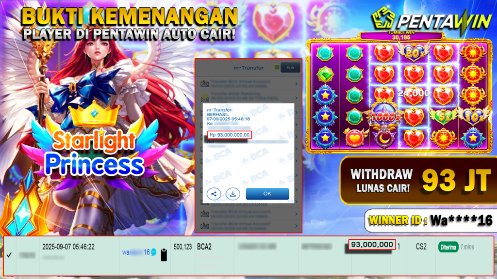 Bukti Kemenangan Dan Withdraw 07 September 2025 Di Game Starlight Princess Wd 93 Juta