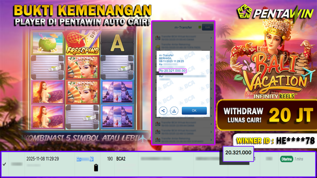 Bukti Kemenangan Dan Withdraw 08 NOVEMBER 2025 Di Game bali vacation WD 20 JUTA