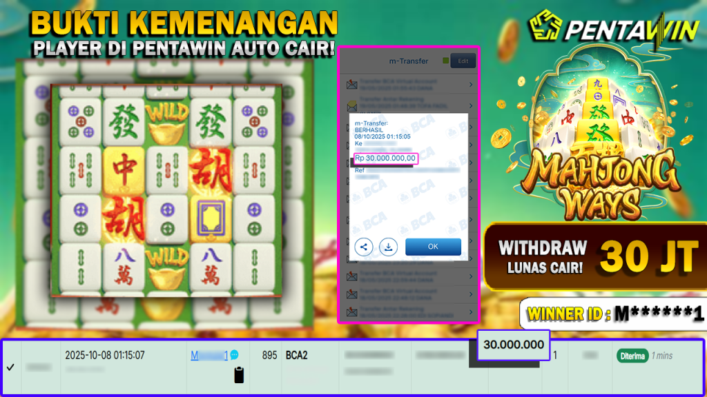 Bukti Kemenangan Dan Withdraw 08 OKTOBER 2025 Di Game Mahjong Ways WD 30 JUTA