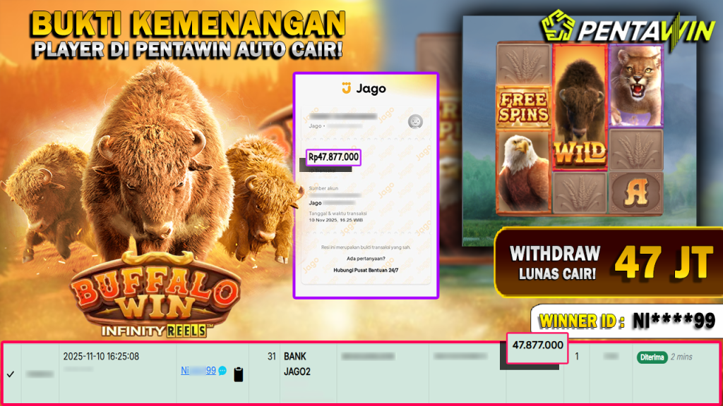 Bukti Kemenangan Dan Withdraw 10 NOVEMBER 2025 Di Game Buffalo Win WD 52 JUTA