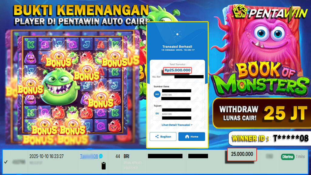 Bukti Kemenangan Dan Withdraw 10 OKTOBER 2025 Di Game book of monsters WD 25 JUTA