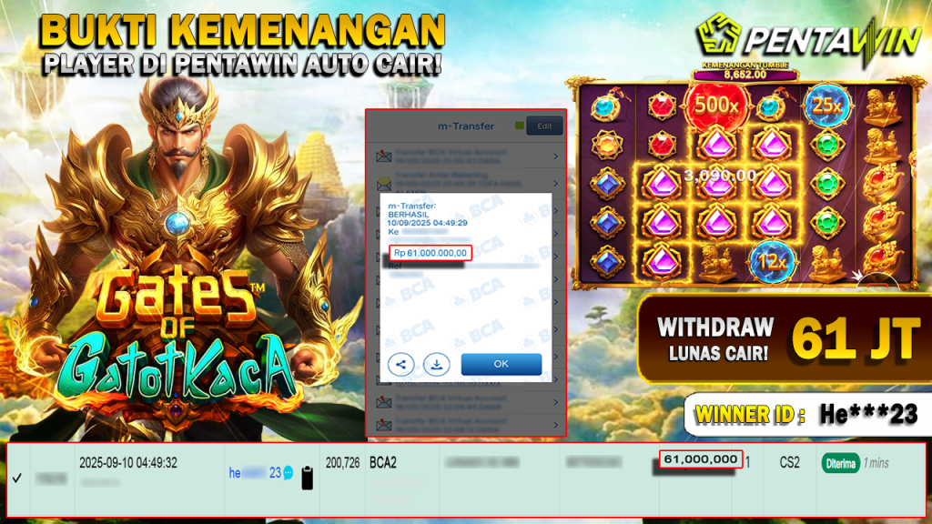 Bukti Kemenangan Dan Withdraw 10 SEPTEMBER 2025 Di Game Gates Of Gatotkaca Wd 61 Juta