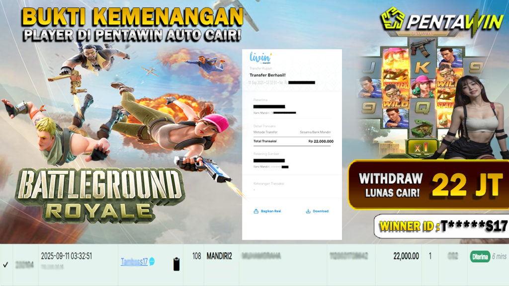 Bukti Kemenangan Dan Withdraw 11 SEPTEMBER 2025 Di Game BATTLEGROUND ROYALE Wd 22 Juta
