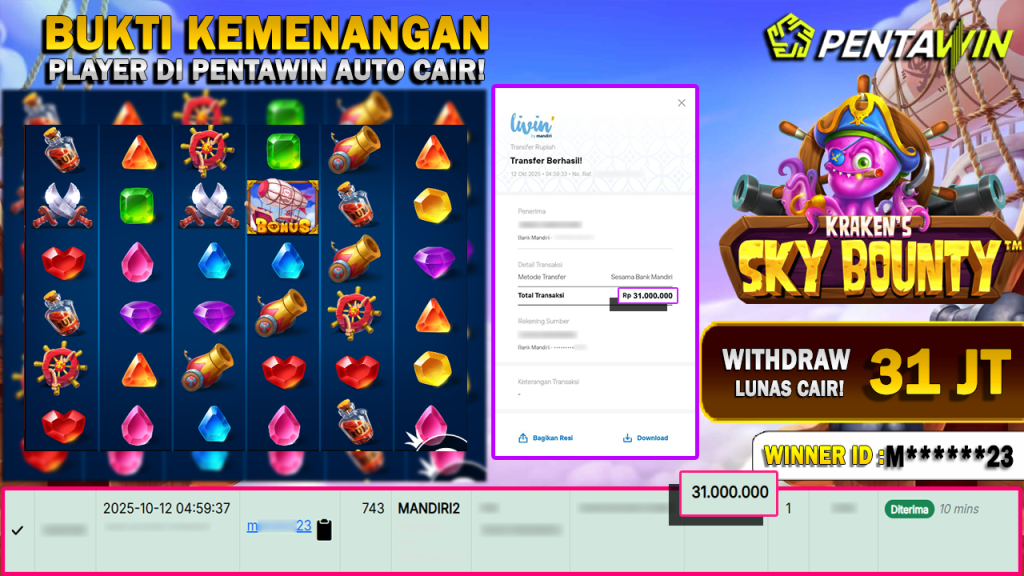 Bukti Kemenangan Dan Withdraw 12 OKTOBER 2025 Di Game Sky Bounty WD 31 JUTA
