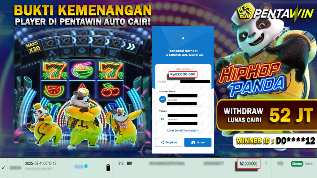 Bukti Kemenangan Dan Withdraw 12 SEPTEMBER 2025 Di Game hip hop panda Wd 52 Juta