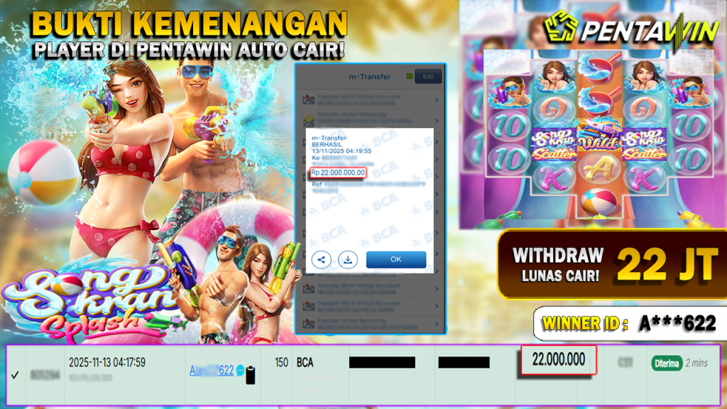 Bukti Kemenangan Dan Withdraw 13 NOVEMBER 2025 Di Game songkran splash WD 22 JUTA