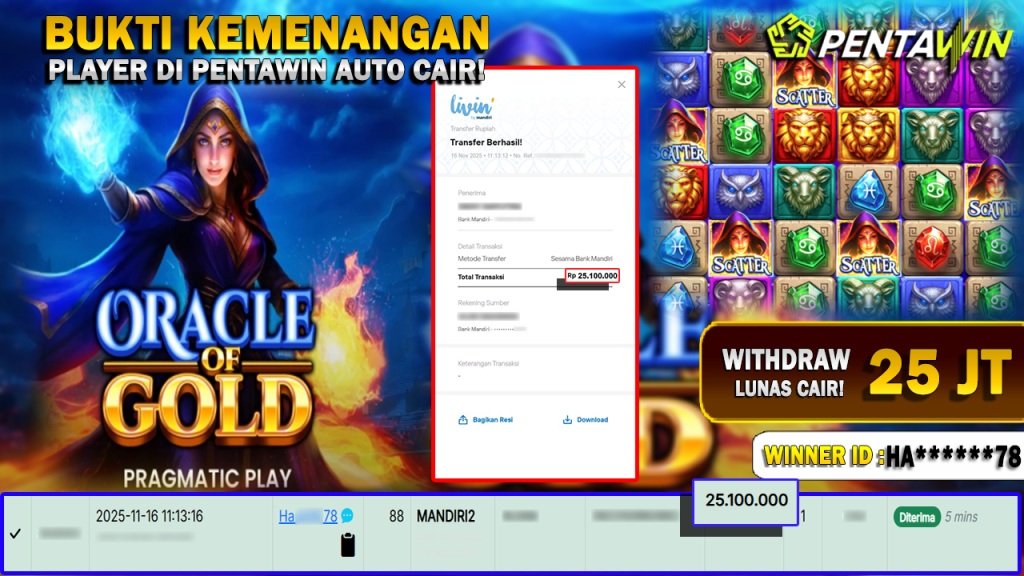 Bukti Kemenangan Dan Withdraw 16 NOVEMBER 2025 Di Game oracle of gold WD 25 JUTA