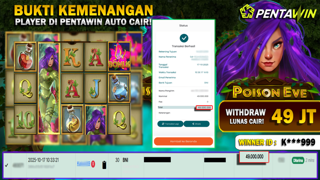 Bukti Kemenangan Dan Withdraw 17 OKTOBER 2025 Di Game Poison Eve WD 49 JUTA