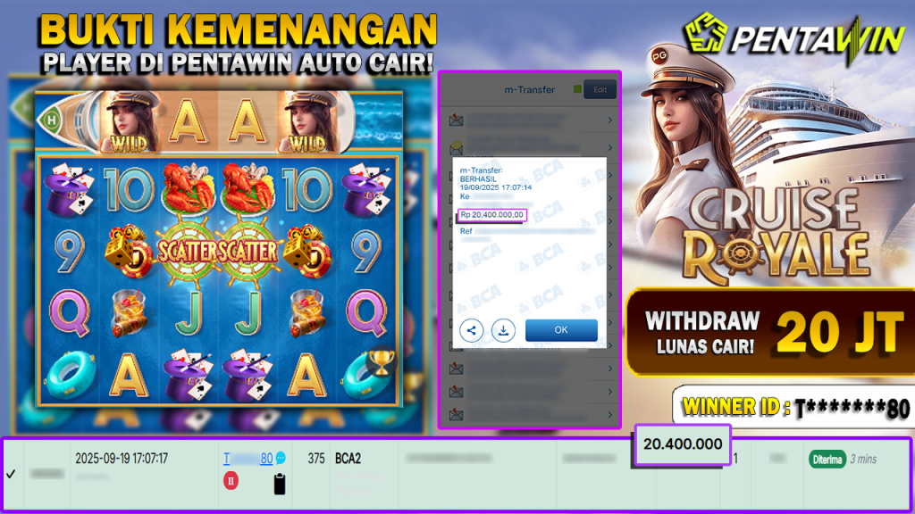 Bukti Kemenangan Dan Withdraw 19 SEPTEMBER 2025 Di Game cruise royale Wd 20 Juta