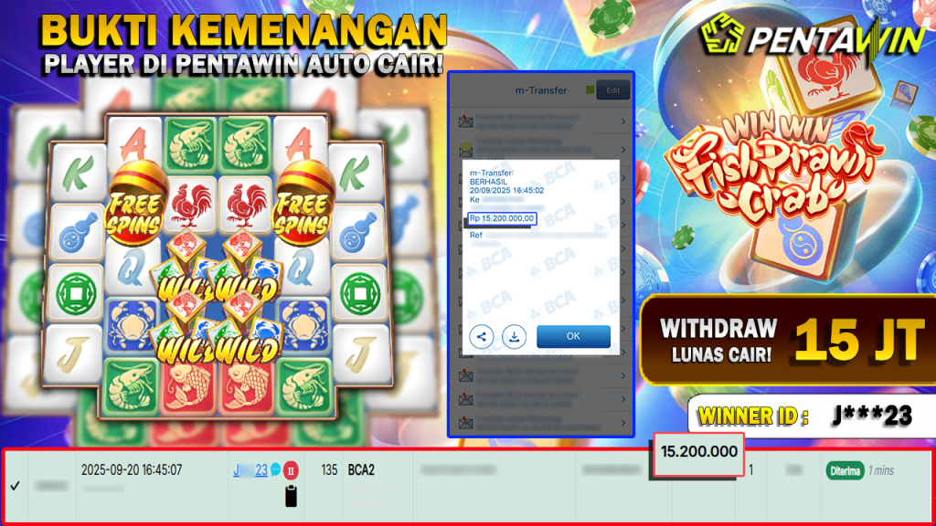 Bukti Kemenangan Dan Withdraw 20 SEPTEMBER 2025 Di Game Win Win Fish Prawn Crab Wd 15 Juta