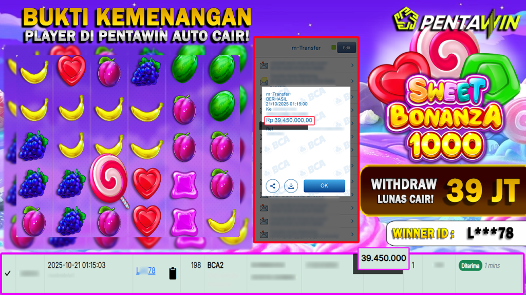 Bukti Kemenangan Dan Withdraw 21 OKTOBER 2025 Di Game sweet bonanza 1000 WD 39 JUTA