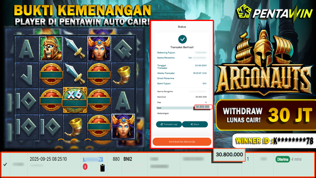 Bukti Kemenangan Dan Withdraw 25 SEPTEMBER 2025 Di Game argonauts Wd 30 Juta