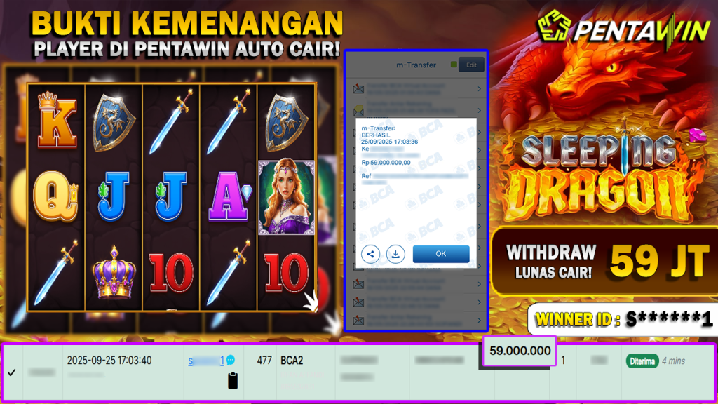 Bukti Kemenangan Dan Withdraw 25 SEPTEMBER 2025 Di Game sleeping dragon Wd 59 Juta
