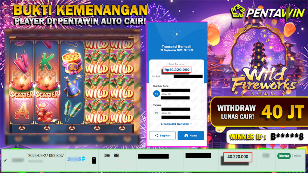 Bukti Kemenangan Dan Withdraw 27 SEPTEMBER 2025 Di Game Wild Fireworks WD 40 JUTA