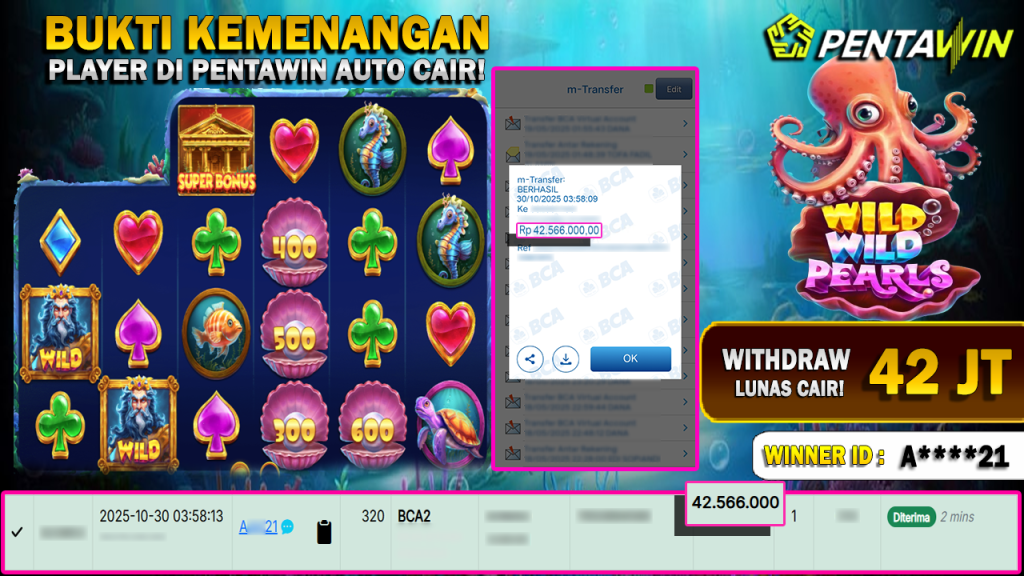 Bukti Kemenangan Dan Withdraw 30 OKTOBER 2025 Di Game Wild Wild Pearls WD 42 JUTA