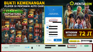 Bukti Kemenangan Dan Withdraw 04 OKTOBER 2025 Di Game zombie school megaways WD 72 JUTA